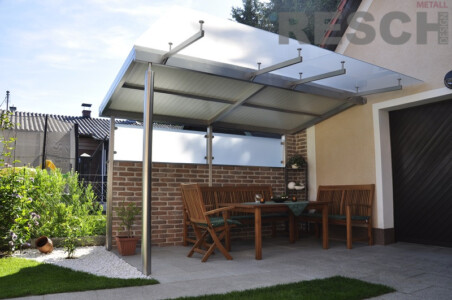 Lauben von RESCH METALL-DESIGN sind durch den Einsatz von Glas sehr hell.